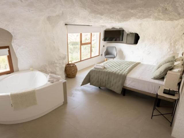 Aún más allá, algunas de estas casas cueva se han rehabilitado con detalles románticos en su decoración y creando espacios para escapadas románticas de primer nivel. Por supuesto, en este tipo de alojamientos no podía faltar un elemento indispensable: el jacuzzi.