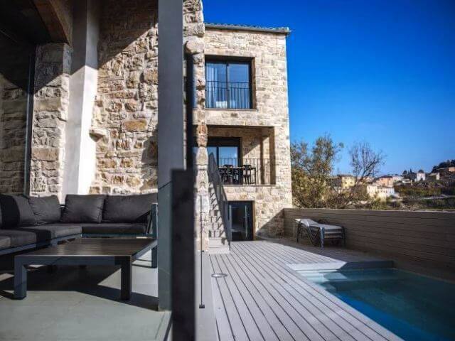 Buena prueba de ello es su zona exterior, con barbacoa, porche y piscina infinity. Eso, desde luego, ya lo hace que sea una casa rural muy especial. Podrás estar plácidamente con tus amigos, hospedando hasta 8 personas con 4 habitaciones y baño.