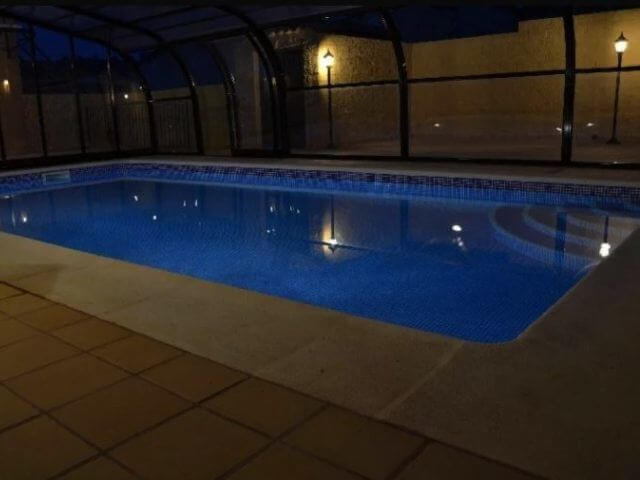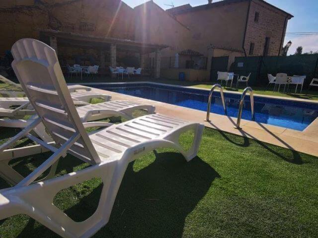 Cuenta con un salón espacioso con chimenea, dos cocinas completamente equipadas, una de ellas con barbacoa y salida directa a un patio con porche. La piscina, de uso exclusivo, se adapta a cada época del año gracias a su cubierta y climatización. Además, dispone de WiFi, categoría oficial de tres estrellas y se alquila de forma íntegra, con condiciones flexibles según el tipo de estancia.