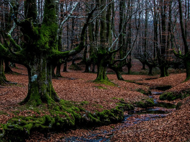 La magia de Otzarreta cambia con las estaciones, pero el otoño tiene algo de rito. El suelo se transforma en una alfombra rojiza, las raíces musgosas quedan dibujadas como venas verdes y la luz, baja, recorta los troncos gruesos, algunos de hasta 3 metros de perímetro.
