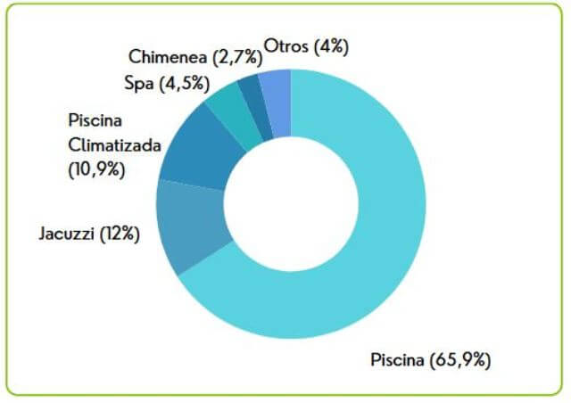 En este sentido, la piscina continúa siendo el servicio más demandado con diferencia, apareciendo en el 65,9% de las consultas que mencionan el alojamiento disponga de piscina.