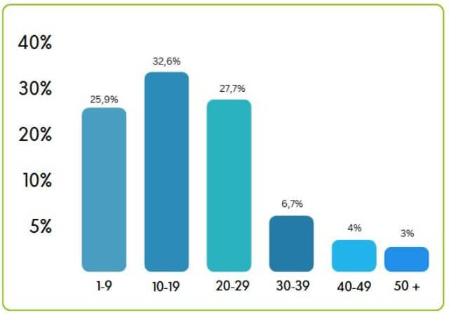 Dentro de este grupo, la franja más habitual es la comprendida entre 10 y 19 huéspedes, que reúne el 32,6% de las consultas. Este dato sugiere que gran parte de las escapadas rurales se organizan en grupos relativamente amplios, como reuniones familiares o viajes entre amigos.