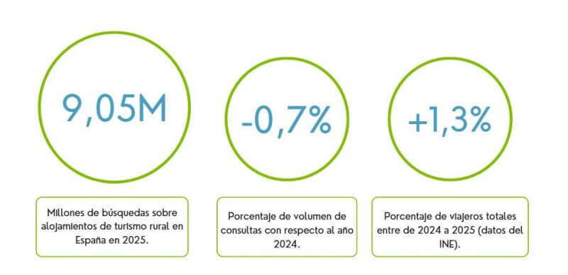 Este dato confirma que el interés por el turismo rural en Internet se mantiene sólido, superando nuevamente la barrera de los nueve millones de búsquedas anuales.