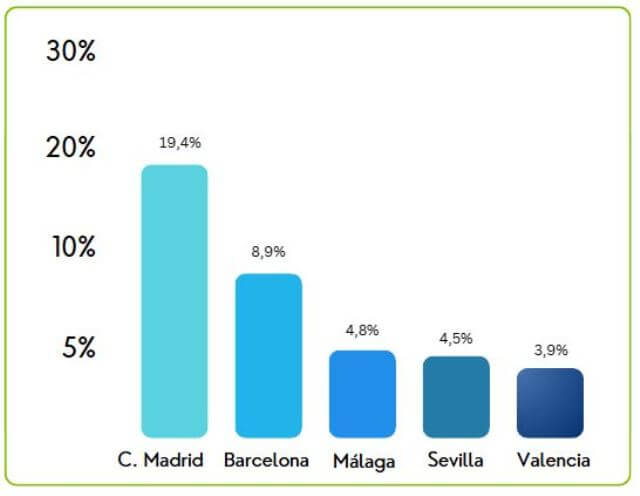Tras Madrid, Barcelona aparece como el segundo gran foco de interés, concentrando el 8,9% de las consultas.