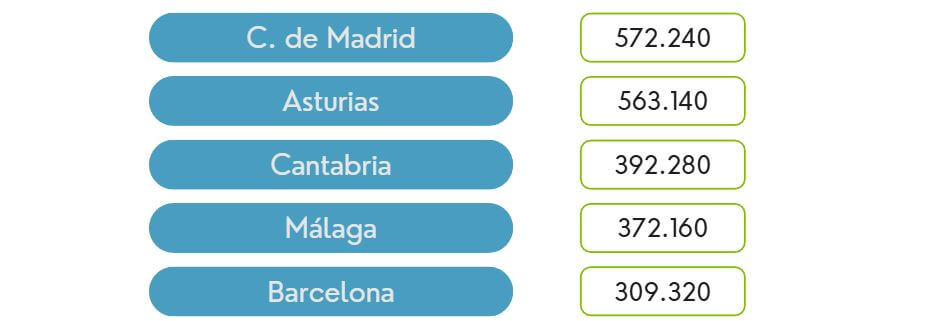 | 10 | Albacete | 233.420 | 35 | Guipúzcoa | 119.420 |