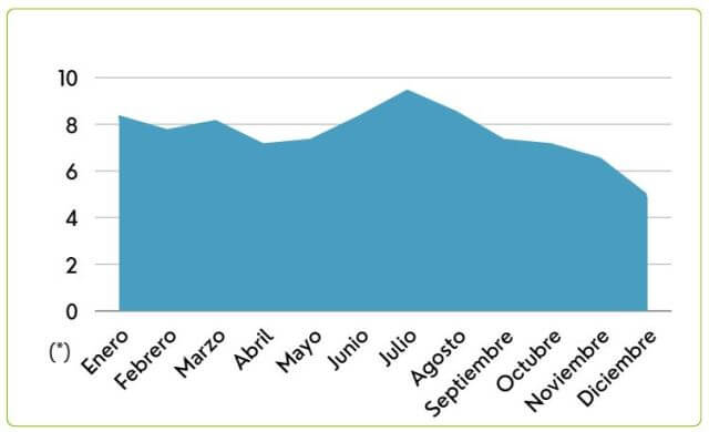 En 2025, los meses que concentran un mayor volumen de búsquedas son julio, con aproximadamente 940.000 consultas, y agosto, con cerca de 850.000. A estos les siguen enero y junio, ambos con cifras que rondan las 830.000 búsquedas.