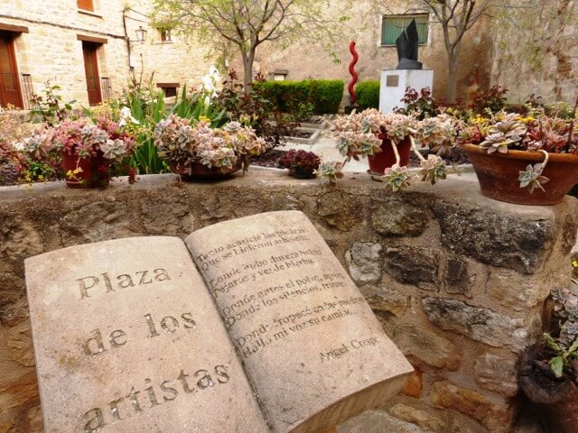 Calaceite ha sido desde mediados del siglo XX un lugar de retiro e inspiración para escritores como José Donoso o Juan Eduardo Cirlot, así como para pintores y músicos. La Plaza de los Artistas es un tributo a este espíritu bohemio que convive con la tradición. No es raro ver aquí a algún acuarelista pintando en silencio.