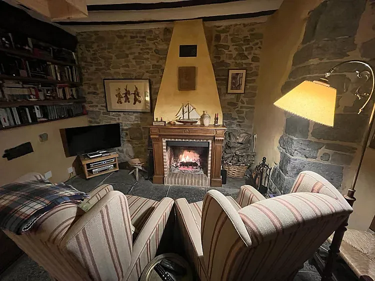 En la planta baja dispone de una cocina amplia y totalmente equipada, con menaje, horno, horno-microondas, lavadora, lavavajillas y zona de comedor para hasta 10 comensales. En esta misma planta hay una sala de lectura con chimenea, televisión y un aseo.