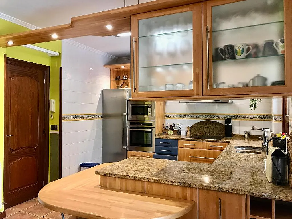 Dispone de una amplia cocina totalmente equipada con vitrocerámica y lavavajillas, junto con un área de comedor con capacidad para 10 personas y acceso al porche.