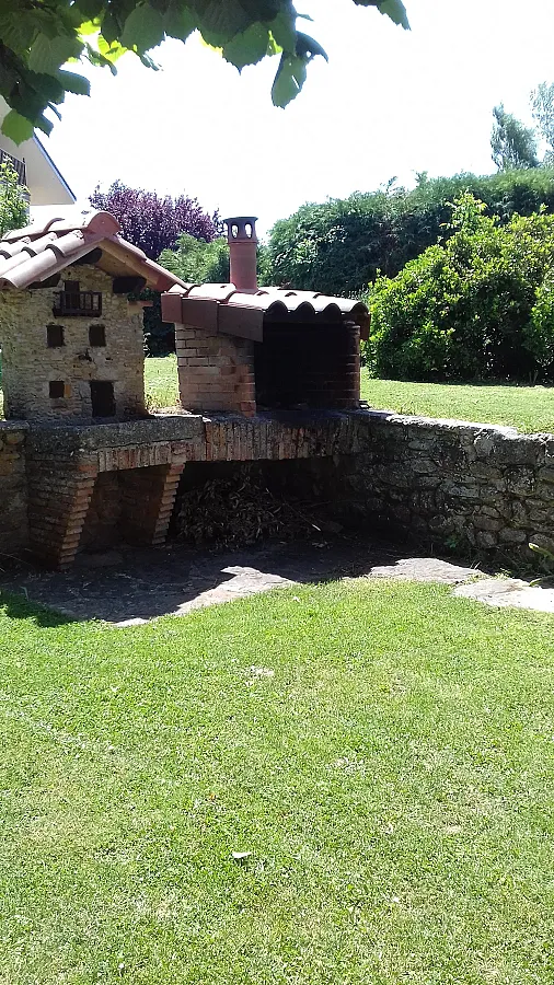 En el exterior, un espacioso jardín con barbacoa y mobiliario de jardín te invita a disfrutar del entorno natural que rodea la casa, caracterizado por frondosos bosques y paisajes de gran valor.
