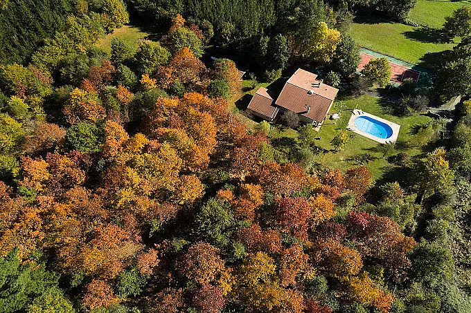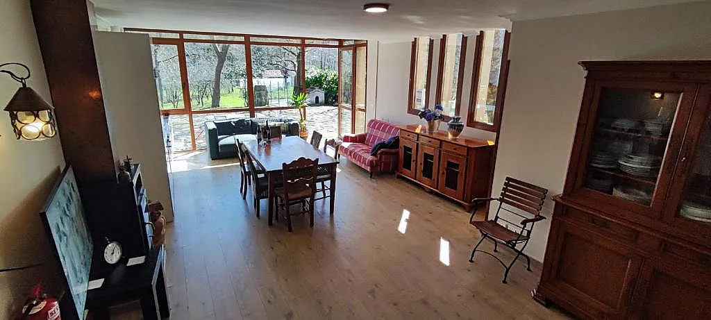 Las zonas comunes incluyen una cocina equipada, salón-comedor con chimenea, calefacción en todo el recinto y TV en todas las habitaciones. A pesar de su aislamiento, el acceso al pueblo es cómodo gracias al camino asfaltado y en buen estado.