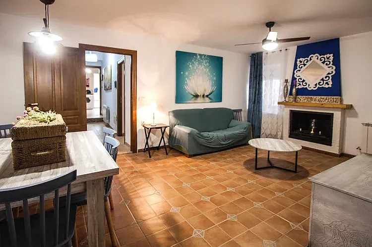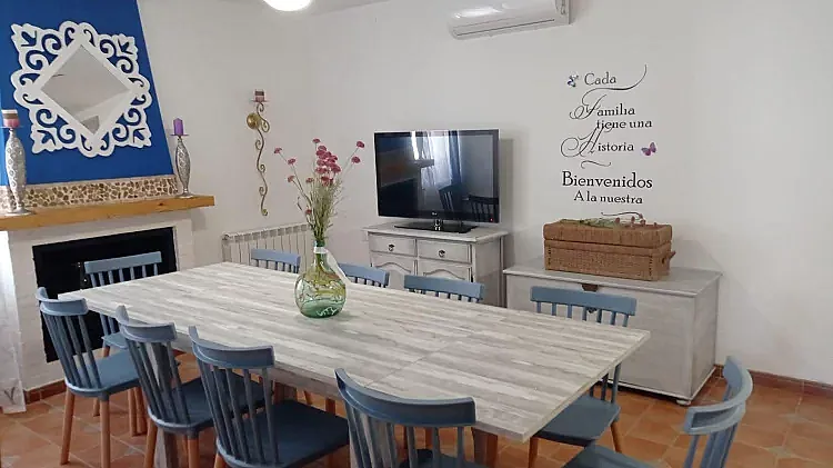 Dispone de 6 habitaciones, 3 de ellas con cama de matrimonio y las otras 3 con dos camas individuales, 4 baños. Salón/Comedor con chimenea, TV y biblioteca. Una cocina completa con lavavajillas y horno.