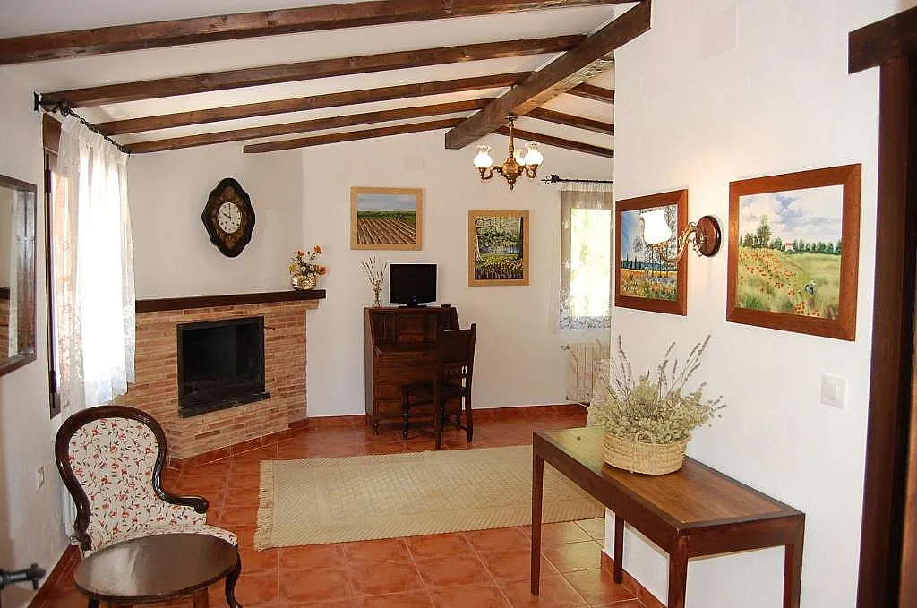 Cuenta con amplio salón con chimenea, tres habitaciones una de ellas también con chimenea, dos baños con ducha y bañera de hidromasaje. Cocina totalmente equipada. Colección de juegos de mesa. Barbacoa. Calefacción. Parcela privada. Aparcamiento.