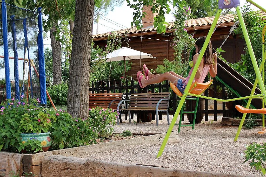El complejo cuenta con una casa rural de 150 m² en el centro, con capacidad para hasta 10 personas. Esta casa está totalmente equipada con un salón comedor de 40 m², cocina completa, 2 baños, 4 habitaciones, calefacción central y barbacoa privada.