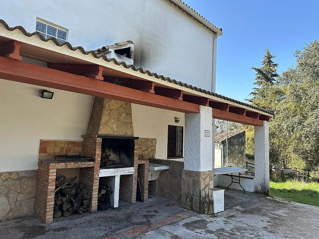 El exterior cuenta con una zona de barbacoa, un huerto y un jardín con muebles, creando un espacio perfecto para el relax y el disfrute al aire libre.