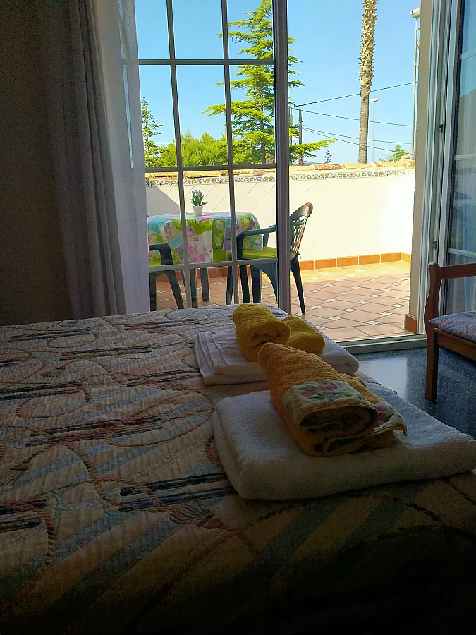 Desde este último dormitorio se accede a una terraza con preciosas vistas al valle, permitiendo a los huéspedes disfrutar del paisaje natural. Los colchones son de alta calidad, y se proporciona ropa de cama para asegurar una estancia confortable.