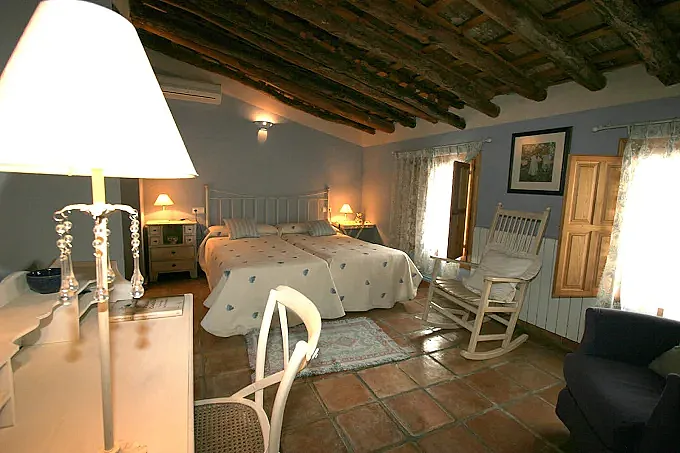 Una de las habitaciones de Casa Rural Albereda es especialmente singular, con tres niveles y capacidad para 4-5 personas. En todas las habitaciones predomina la madera en los techos, así como la luminosidad y amplitud. Cada habitación está equipada con baño privado, televisión, wifi, aire acondicionado y calefacción, asegurando una estancia cómoda para todos los huéspedes.