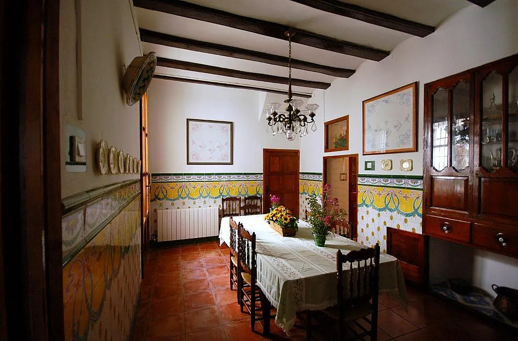 La decoración de la casa incluye piezas restauradas que mantienen el carácter histórico del lugar, con detalles únicos como techos altos, suelos hidráulicos y elementos antiguos como una almazara con prensas y tinajas para el aceite.