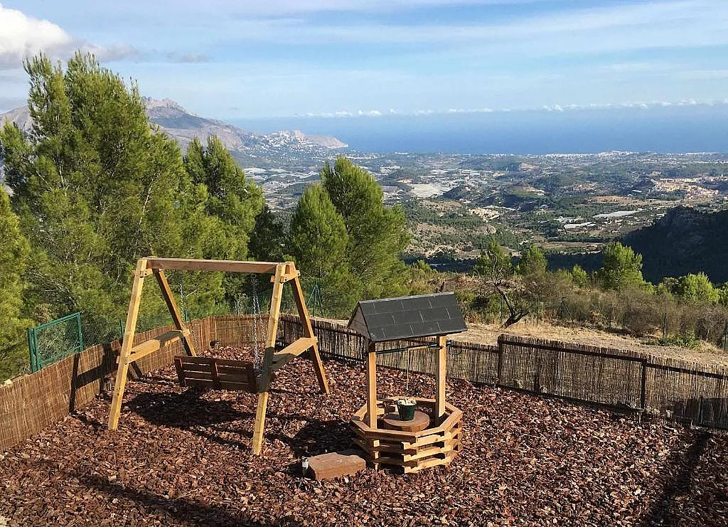 Torre de Arriba es un impresionante complejo situado dentro de una finca privada de 180 hectáreas, rodeado de almendros y olivos, y enmarcado por las faldas de la Sierra de Aitana. Las vistas del valle que se extiende hacia el mar son simplemente fantásticas. La finca ofrece una variedad de comodidades, incluyendo una piscina, solarium, parque infantil y trampolín, lo que la hace ideal para familias y grupos.