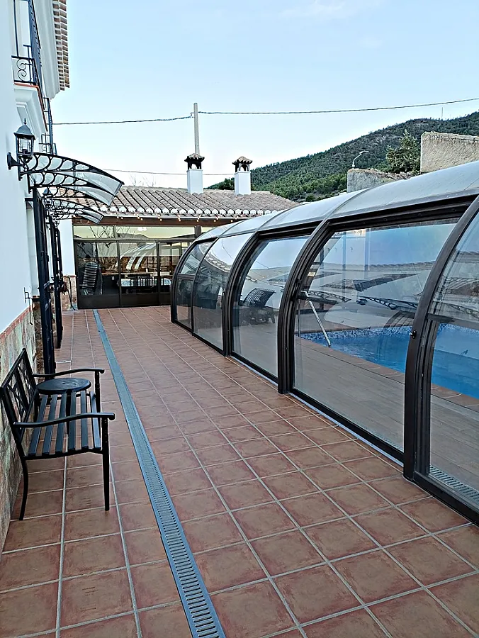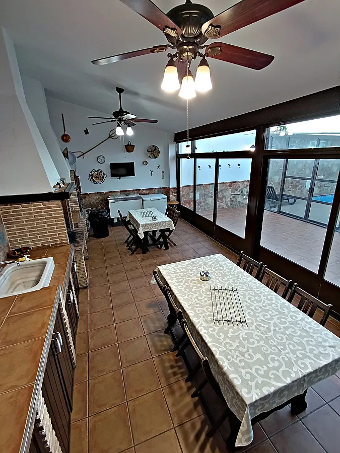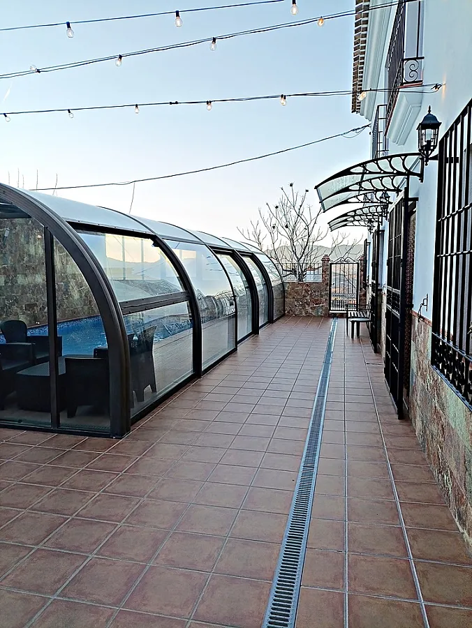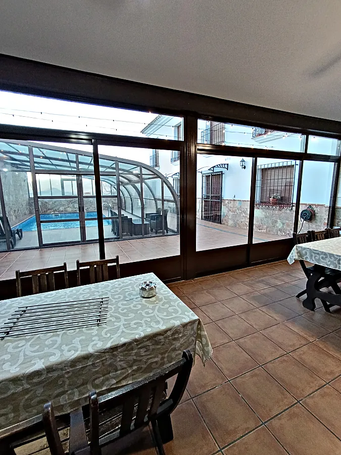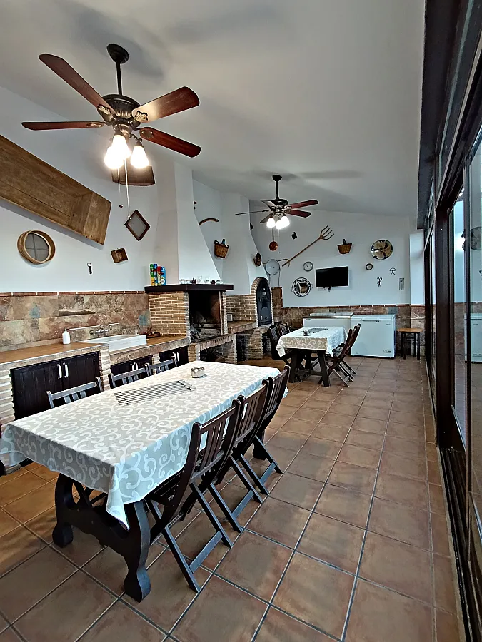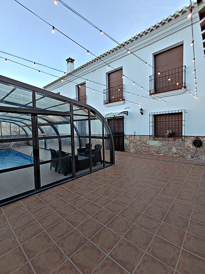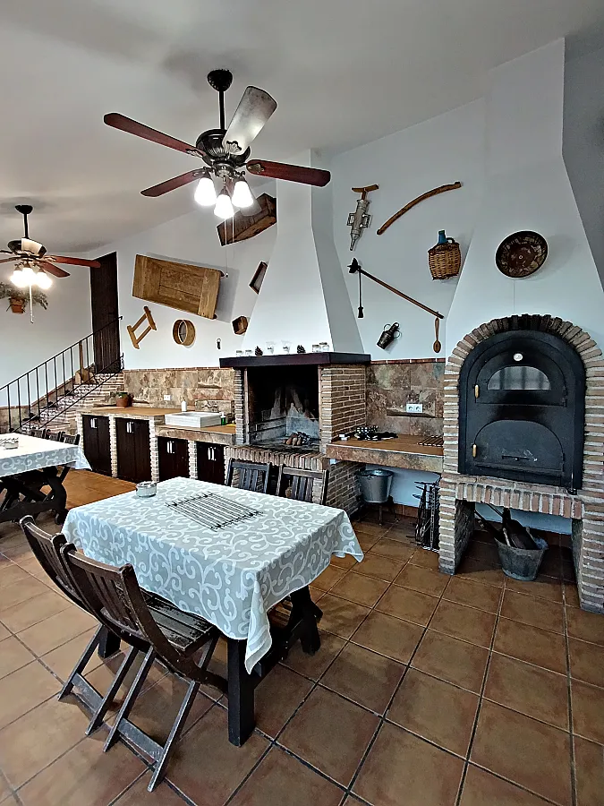 Casa señorial de estilo típico velezano con capacidad para 14 personas, distribuida en 6 dormitorios, 6 baños, gran salón-comedor con chimenea, cocina totalmente equipada (microondas, horno, lavavajillas, tostadores, exprimidor, sandwichera, batidora, cafetera eléctrica, etc.), amplio recinto exterior con barbacoa, horno de leña y zona de comedor, piscina cubierta, calefacción central, televisión en todas las habitaciones, mobiliario para exterior (mesas, sillas, hamacas). Equipamiento para bebés (cunas, tronas, etc.).