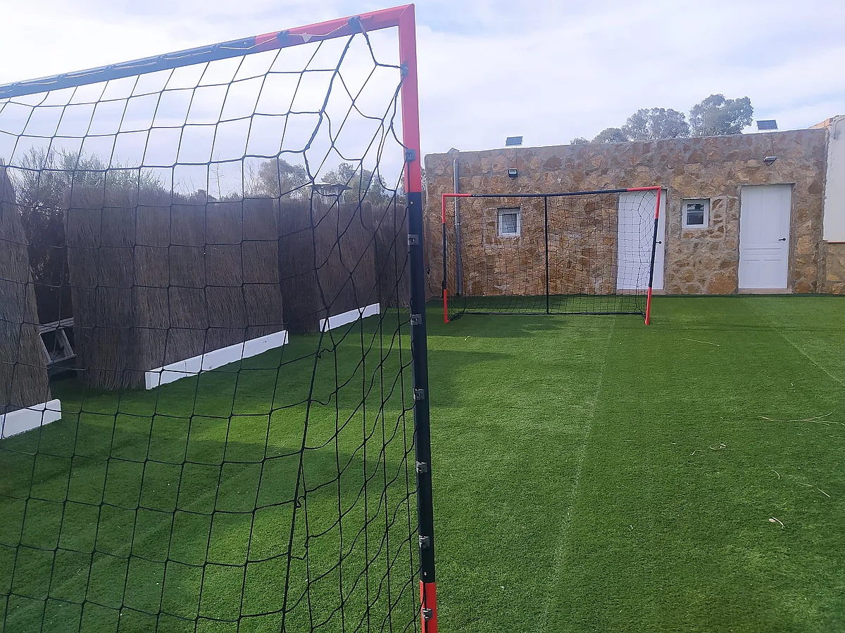 La casa dispone de 2 dormitorios equipados con 3 camas de matrimonio, 1 cama extragrande y 2 futones adicionales, lo que permite adaptar la estancia a distintos grupos. Cuenta con 3 baños modernos con acabados en madera y mármol, cocina con todo el menaje necesario y un abanico de copas para ocasiones especiales. El salón es amplio, con sofás, juegos de mesa y televisión de pantalla plana, pensado para reuniones y momentos compartidos.