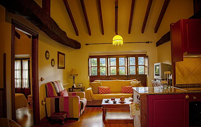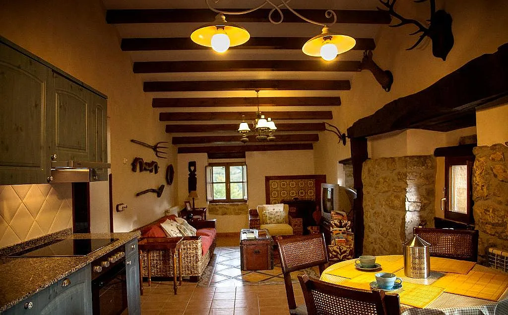 En la planta primera, consta de 2 habitaciones, una doble y otra matrimonial, con un baño completo, y un amplio salón comedor, con chimenea, televisión y DVD, con la cocina totalmente equipada (lavadora, nevera, lavavajillas, vitrocerámica, horno, microondas, plancha, etc.).