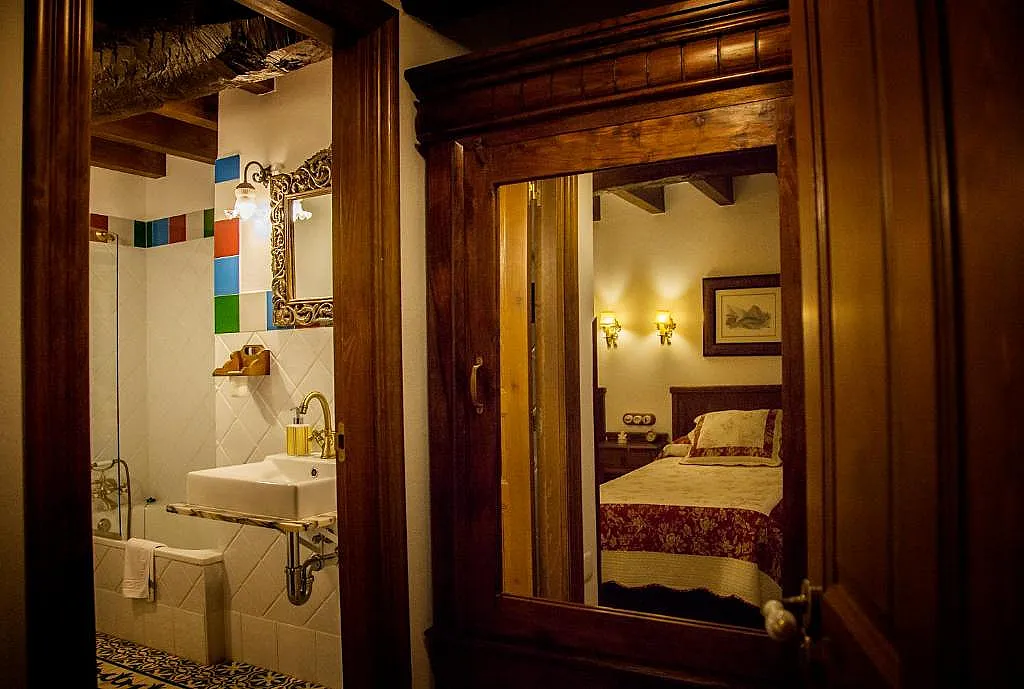 En la planta alta, consta de 2 habitaciones, cada una de ellas con baño completo, una doble y otra matrimonial, la habitación matrimonial con ducha de hidromasaje, y un amplio salón comedor, con televisión y DVD, y con la cocina totalmente equipada (lavadora, nevera, lavavajillas, vitrocerámica, horno, microondas, plancha, etc.).