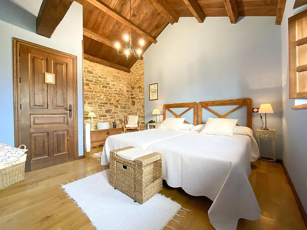 El hotel mantiene el carácter de la antigua casería sobre la que se asienta, respetando su disposición original alrededor de un patio central. Este diseño aporta autenticidad a la estancia y conserva la esencia rural del entorno.
