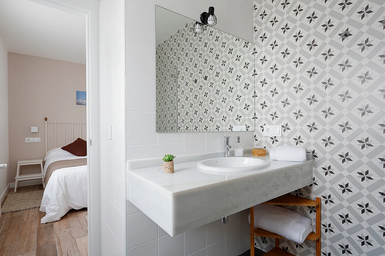 Dispone de 3 habitaciones dobles con ventanas al exterior: 2 con 2 camas de 0,90 x 1,90 m y 1 con cama de 1,80 x 1,90 m y baño integrado. Además, cuenta con 2 cuartos de baño completos con ducha y secador de pelo.