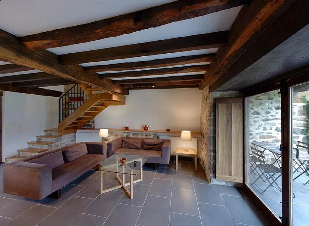 La casa fue originalmente parte de una granja del siglo XIX y fue rehabilitada en 2006 respetando sus elementos arquitectónicos originales: techos y suelos de madera, muros de piedra, carpintería tradicional.