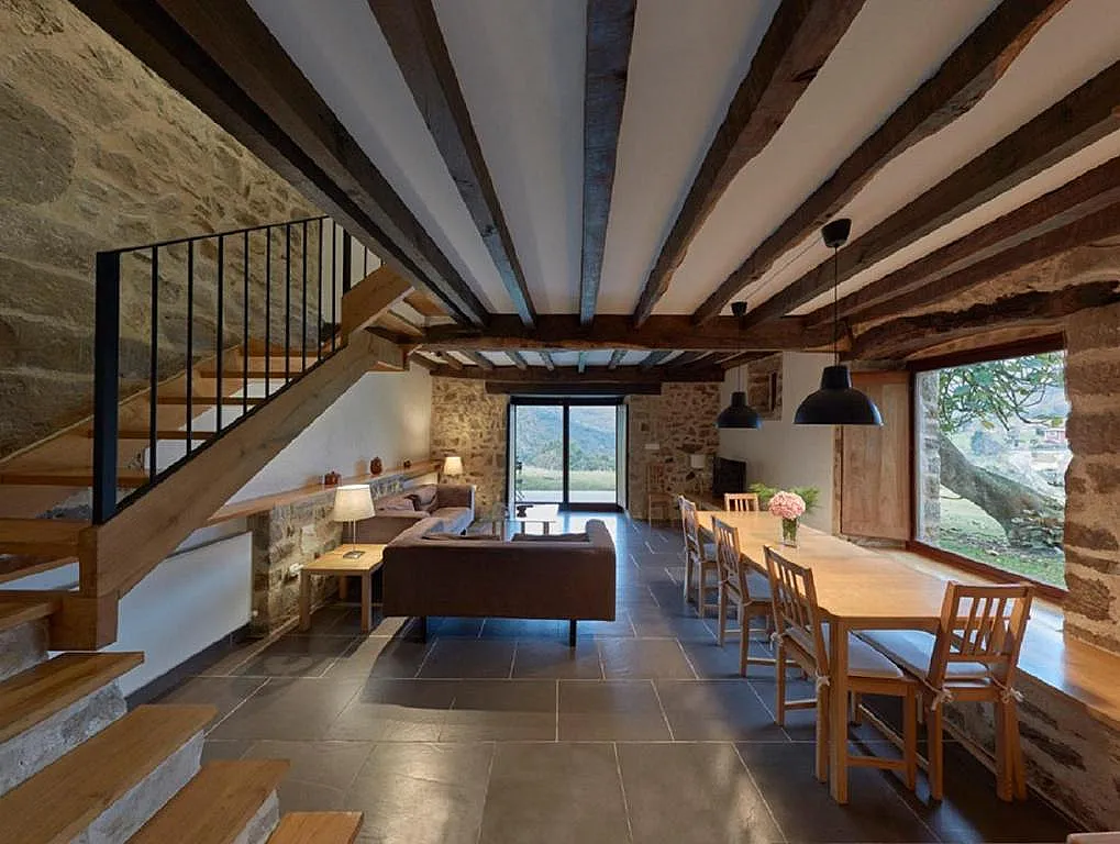 Esta vivienda se integra en el entorno como una antigua construcción tradicional asturiana, ahora rehabilitada, que conserva su carácter rústico y lo combina con todas las comodidades necesarias para una estancia confortable.
