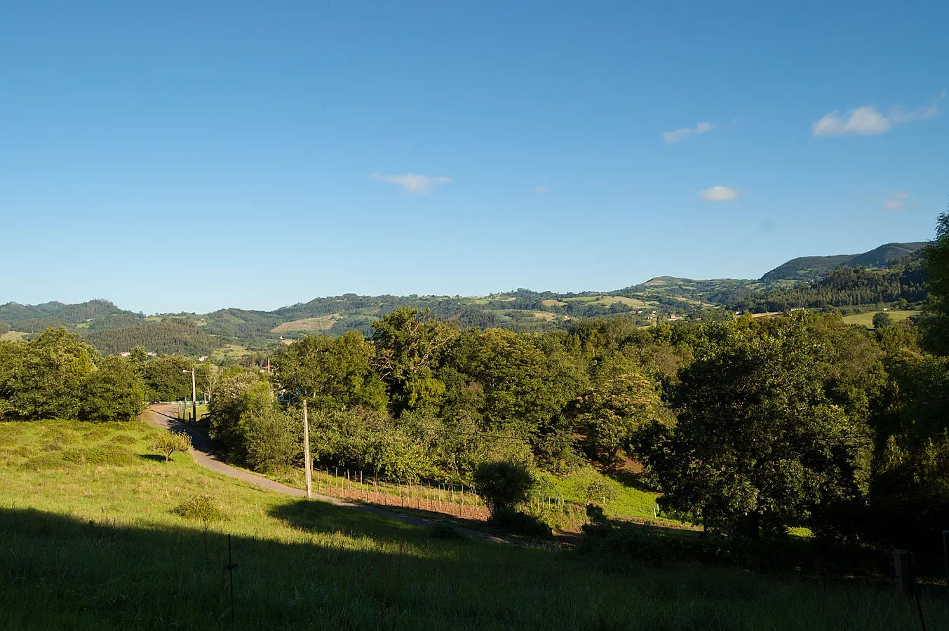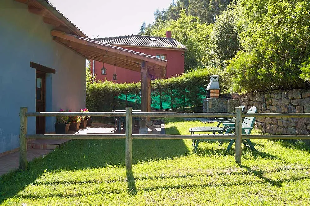 La zona donde están las casas es una zona muy tranquila. Está en un final de camino, después de pasar el grupo de casas principales del pueblo. No es sitio de paso ni de coches ni de tractores, solo de la gente que se aloja en Casa Lolo y en Casa La Pumarada. Las casas están en parcelas contiguas, aunque independientes una de la otra totalmente. No comparten nada. Cada una tiene su jardín, su barbacoa, su entrada y aparcamiento propios