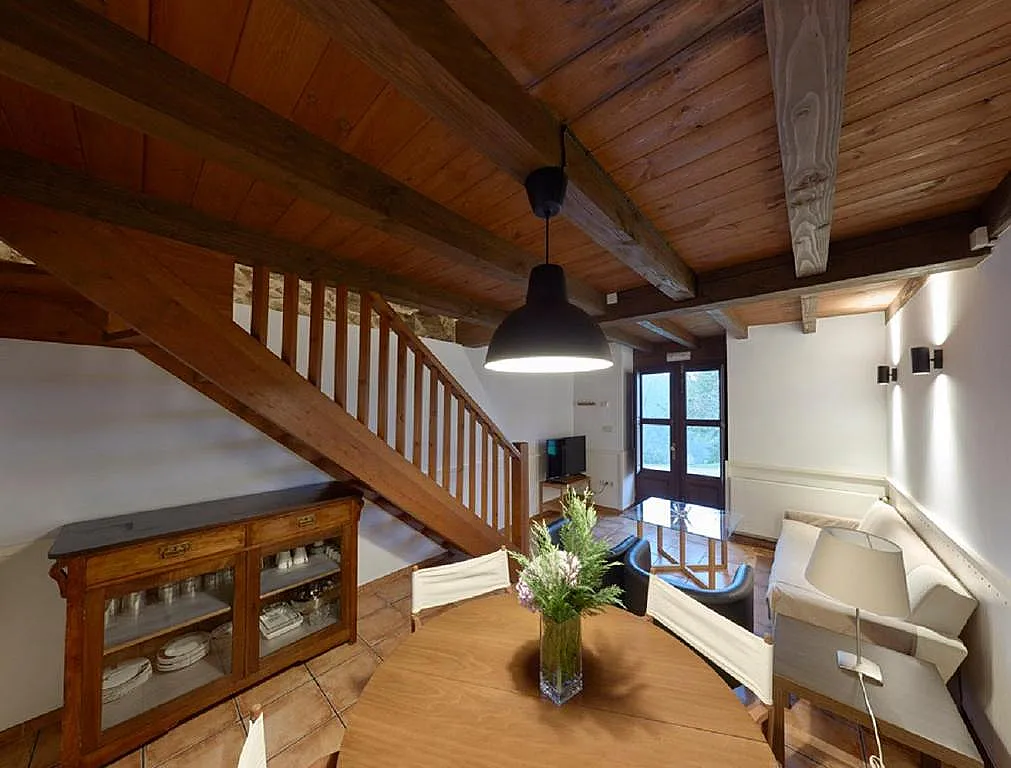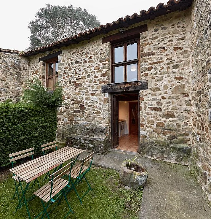 La vivienda ocupa lo que fue una dependencia de una granja del siglo XIX, rehabilitada en 2009 como “Casa de Aldea”. Se han conservado los elementos estructurales originales como los suelos y techos de madera, los muros de piedra y la carpintería tradicional, pero incorporando todas las comodidades actuales: calefacción y agua caliente por gasóleo, cocina completamente equipada y estancias funcionales.