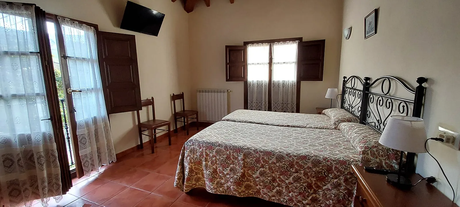 Todas las habitaciones son exteriores, lo que garantiza luminosidad y vistas al entorno natural. Además, están equipadas con baño privado, calefacción, televisión y techos de madera.