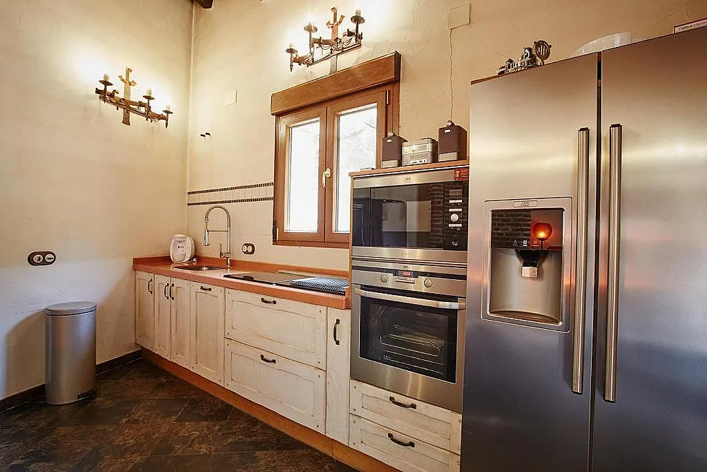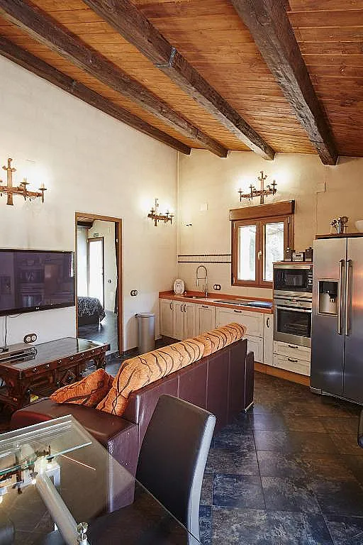 La casa de Cucu es el sueño del descanso y el confort,al entrar encontramos un moderno salón con un sofá cama,gran pantalla de TV,chimenea,mesa de cristal y 4 sillas de diseño.Perfectamente integrada,se encuentra la cocina americana a la que no le falta ni un detalle:frigorífico,lavavajillas,horno,microondas,placa vitrocerámica y una cafetera TÁSSIMO con un set de bebidas gratuito.A través de una puerta centrada, pasamos al dormitorio tipo suite con cama queen size y TV.El baño es un conjunto de jacuzzi,ducha relax y baño clásico.
