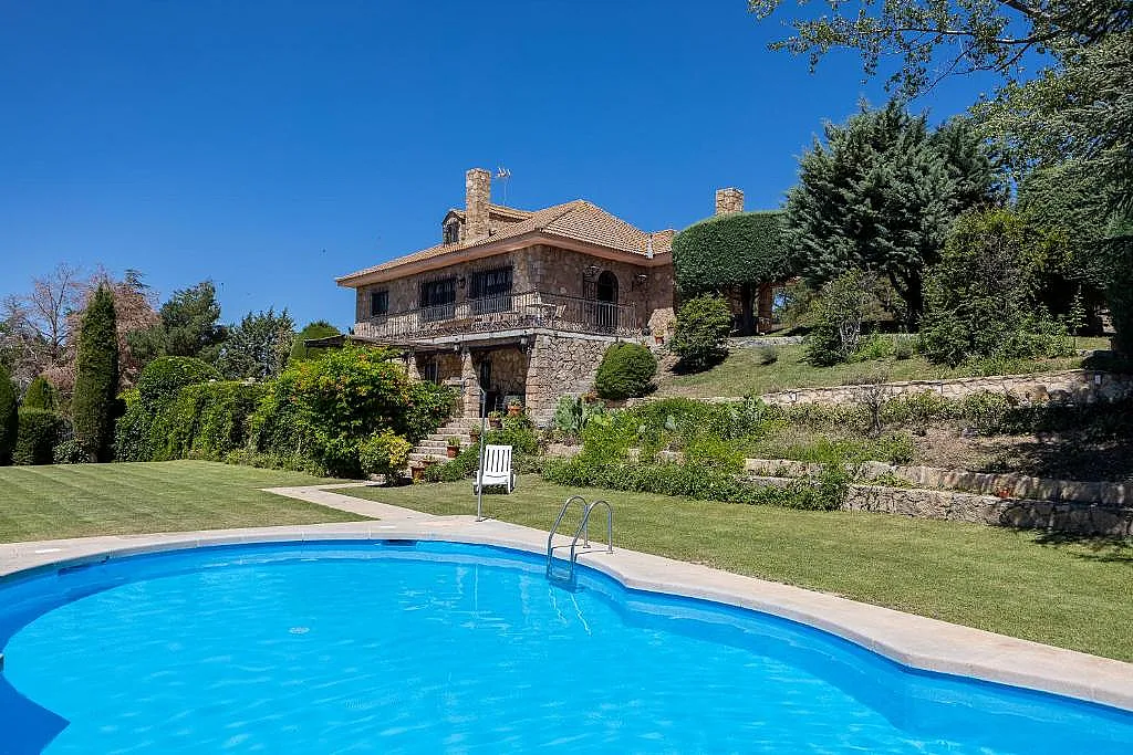 La casa rural consta de tres plantas y se alquila completa y por fines de semana. Aparte de cocina, salon y comedor, tiene 6 dormitorios dobles, un ático y 5 baños. 7000 m2 de zona ajardinada, piscina privada y zona de barbacoa independiente, ademas de amplias terrazas.