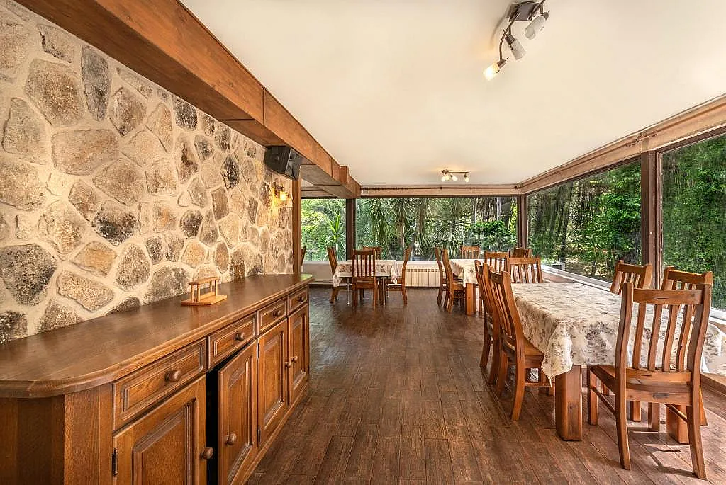 El restaurante del hotel sirve platos de cocina tradicional española y ofrece la opción de almuerzos para llevar, ideal para aquellos que desean explorar la naturaleza circundante. En el exterior, se puede pasear por los jardines y tomar el sol en las zonas de terrazas.