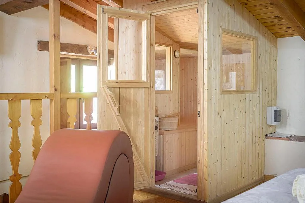 - Amplia bañera de hidromasaje doble y sauna finlandesa