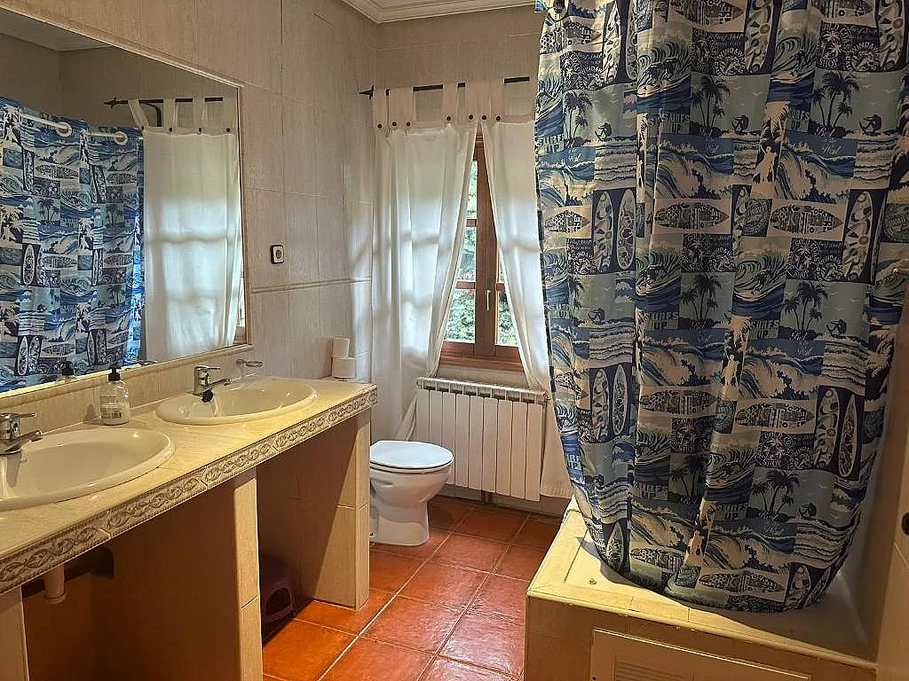 La casa, de planta baja y construida en piedra, cuenta con una cocina totalmente equipada, un salón-comedor con chimenea, cinco dormitorios (tres con cama de matrimonio y dos con camas individuales), tres baños completos y una sala de juegos con futbolín. El amplio jardín con piscina, barbacoa y zona de aparcamiento añade comodidad y diversión a la estancia.