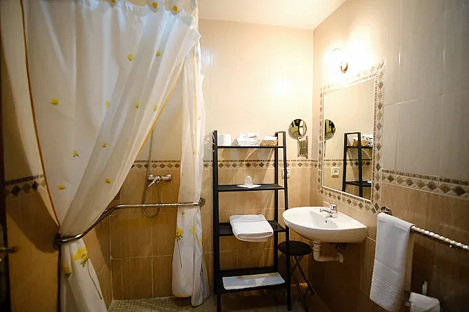 Este acogedor hotel consta de 5 habitaciones: 2 dobles con cama supletoria, 2 triples y una individual, también con cama supletoria y adaptada para personas con movilidad reducida. Todas las habitaciones están equipadas con baño privado y televisión, asegurando una estancia cómoda y agradable para todos los huéspedes.