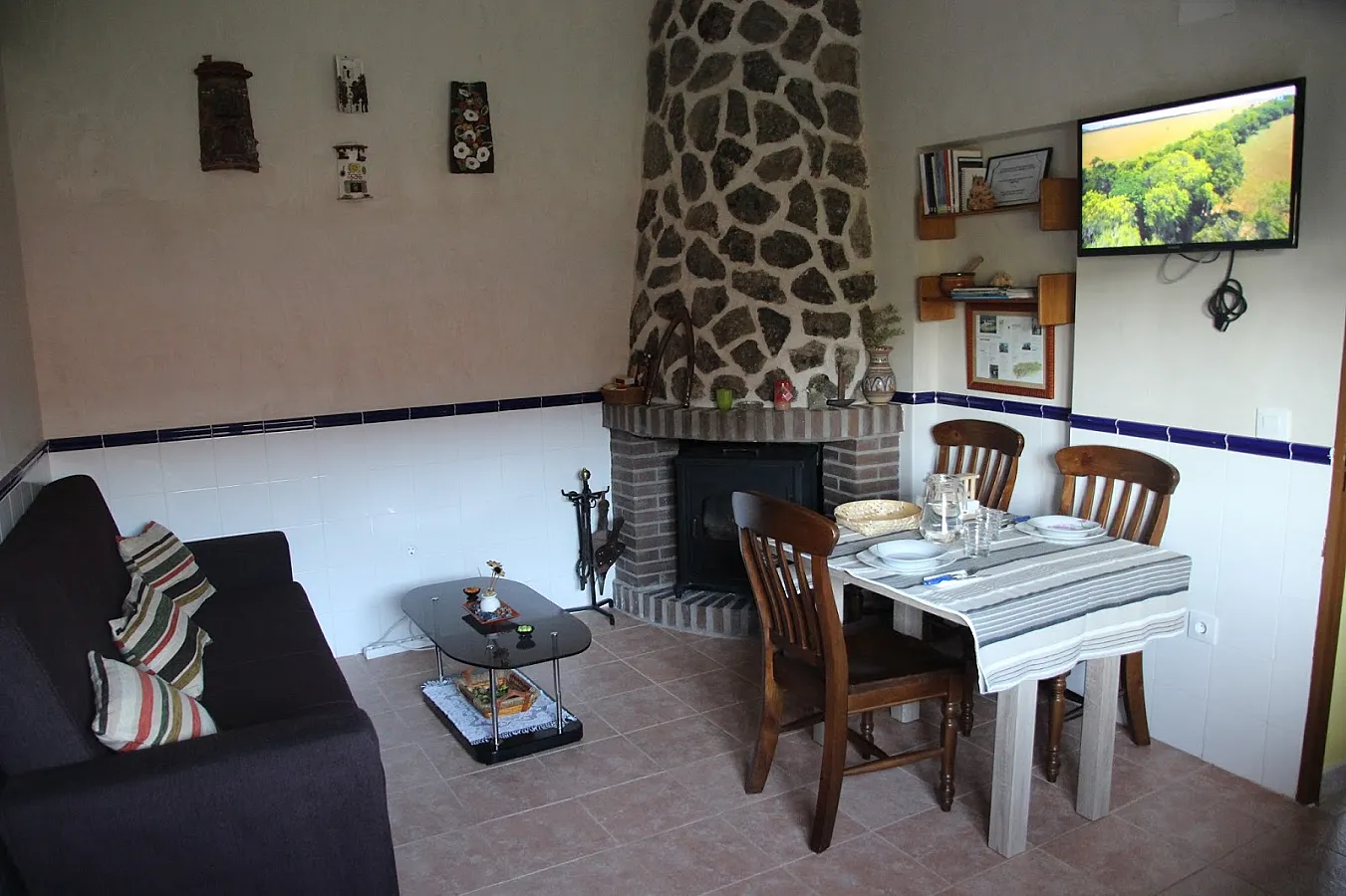 El alojamiento cuenta con un dormitorio triple (una cama de 135 cm y una de 90 cm) ideal para amigos, matrimonios con hijos o parejas. La casa puede albergar, cómodamente, un máximo de tres adultos más un bebe (cuna disponible). Su acogedor salón cocina-comedor cuenta con chimenea en la cual hay instalada una estufa de leña, con televisión de plasma de 32 pulgadas, sofá-cama, mesa y sillas de madera, está perfectamente acondicionado e iluminado, cuenta con todo lo necesario para pasar una estancia idílica. La cocina está equipada con menaje de cocina (sartenes, cazuelas, olla y todo tipo de utensilios) y electrodomésticos (frigorífico, microondas, lavadora, vitrocerámica, horno, campana extractora, termo eléctrico, plancha de cocina, batidora, etc.). Un cuarto de baño completo, con plato de ducha, toallas de baño y de aseo para cada uno de los huéspedes.