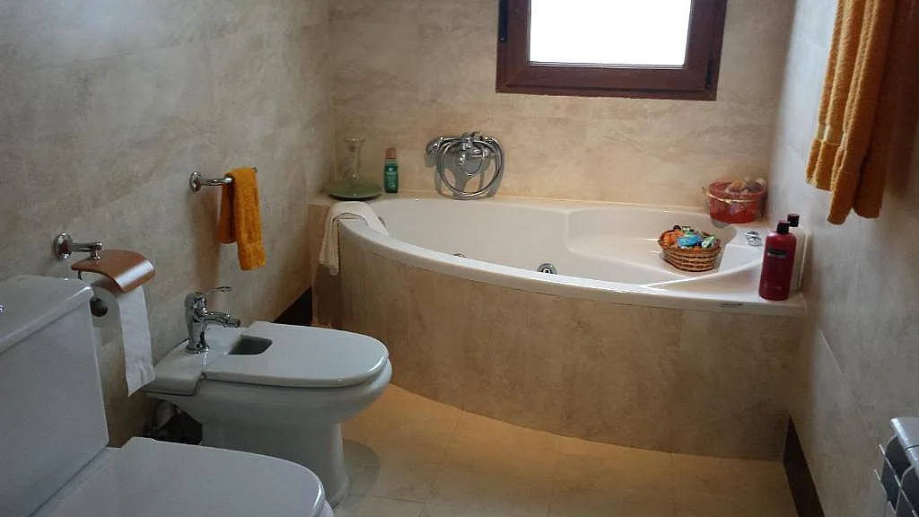 La casa cuenta con un salón-comedor con amplios ventanales y chimenea, una zona de estar con mirador y sofá cama, un dormitorio de matrimonio, dos dormitorios individuales y una habitación cuádruple con cama de matrimonio y dos camas individuales. Además, dispone de dos cuartos de baño, un aseo en la planta baja y una cocina completamente equipada. La terraza ofrece unas vistas impresionantes, y el garaje en la finca añade comodidad adicional.