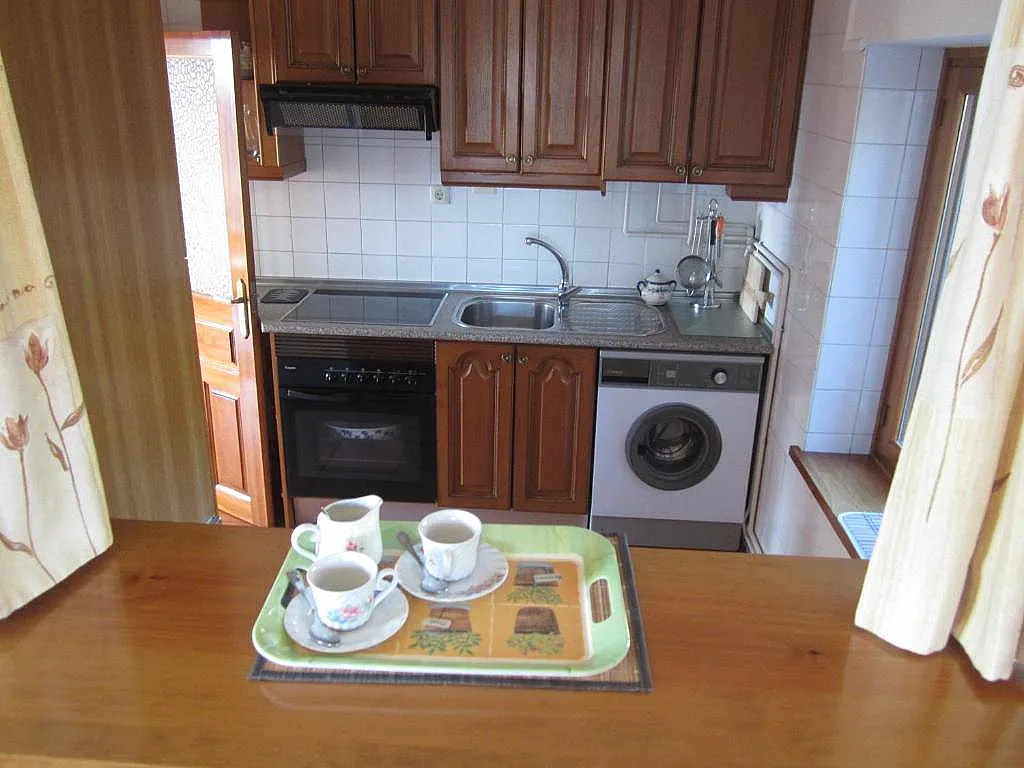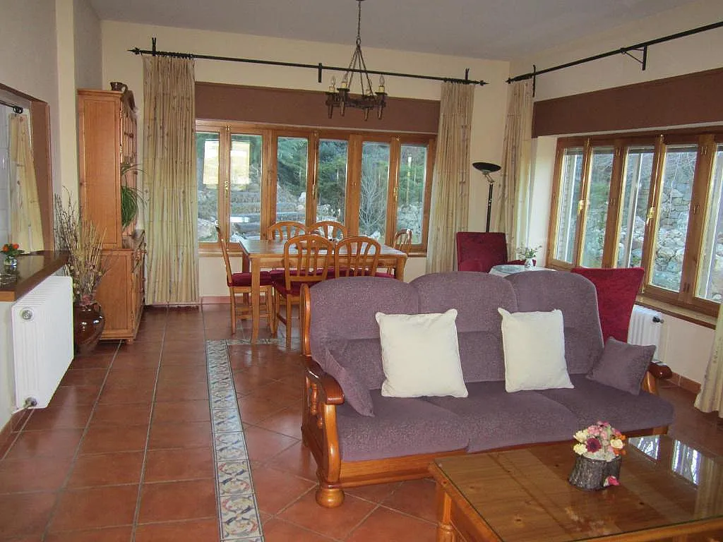 La cocina, equipada con horno y otros electrodomésticos, asegura comodidad para preparar comidas durante la estancia. El salón, con chimenea y ventanas amplias, ofrece un espacio acogedor para relajarse y disfrutar de las vistas. Además, se proporcionan toallas y ropa de cama para mayor comodidad de los huéspedes.