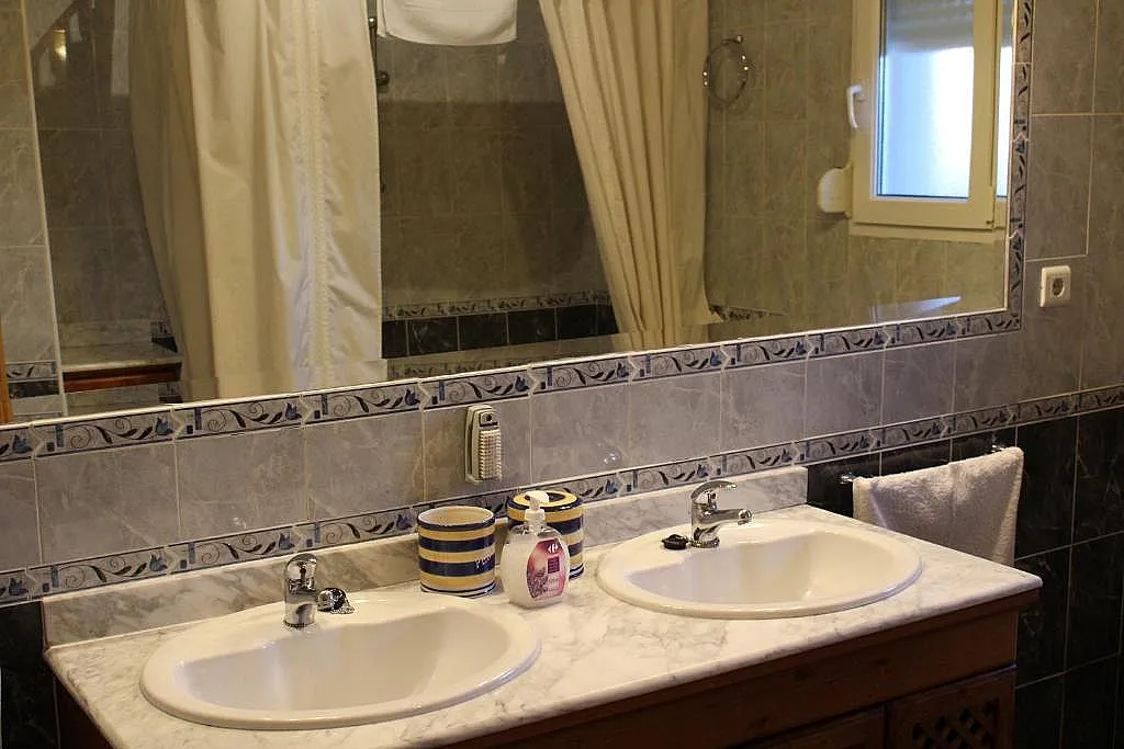 Consta de una planta baja en la que se encuentran el salón comedor, la cocina, tres habitaciones, una de las habitaciones de 16 m2 tiene una cama de matrimonio, y posibilidad de poner una cama supletoria,o cuna para niños; dos baños y un salón de 45 m2 para juegos, tiene un abuhardillado con un saloncito totalmente amueblado con TV. Un baño completo, vestidor, y una habitación con dos camas de 90 y una supletoria.