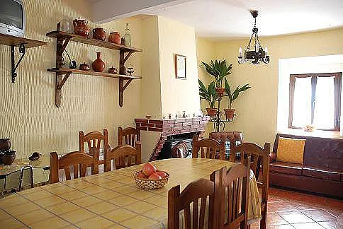 La vivienda se distribuye en dos plantas: en la planta baja, se encuentra un amplio salón-comedor con chimenea, una habitación individual, una habitación doble y un baño completo. En la planta superior, hay otra habitación individual, tres habitaciones dobles (dos con cama de matrimonio), dos baños completos, una sala de estar con acceso a una terraza y un mirador con vistas espectaculares.