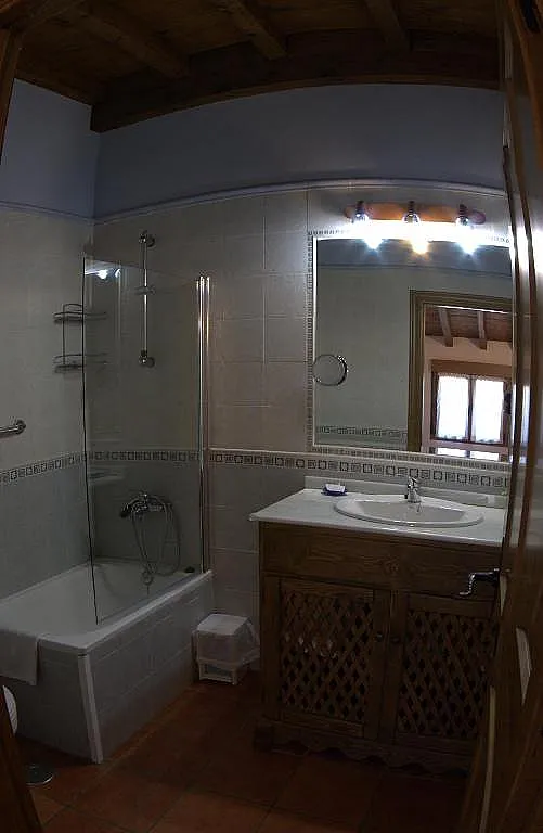 La casa dispone de un amplio salón-comedor con chimenea y cocina americana, y dos habitaciones dobles, una de ellas con cama de matrimonio. Cada habitación cuenta con su propio baño privado, garantizando la intimidad de los huéspedes.