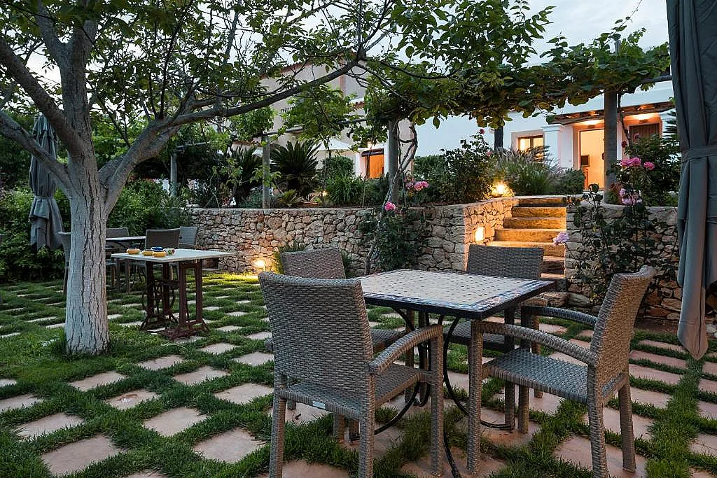 El diseño arquitectónico de Can Planells respeta las características típicas de Ibiza, con formas cúbicas, arcos y porches. Las habitaciones, todas únicas, están distribuidas entre la casa familiar, los establos y la antigua vaquería, y han sido adaptadas para ofrecer estancias amplias y cómodas. La decoración rústica, con vigas de madera de sabina, añade un toque acogedor y auténtico.