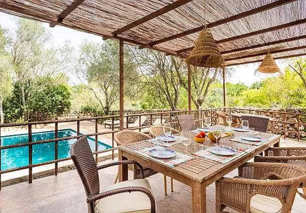 os huéspedes pueden disfrutar de paseos por los caminos de la finca, que ofrecen vistas únicas del paisaje mallorquín. Las instalaciones incluyen una piscina, una terraza cubierta exterior, una barbacoa y una cocina completamente equipada.