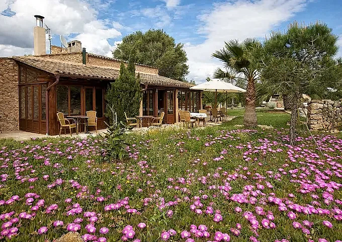 La Verana es un hotel rural situado en Llucmajor, en la parte sur de Mallorca, alejado del bullicio turístico. Esta finca del siglo XVII ha sido restaurada conservando su carácter original, con edificios de piedra natural rodeados de jardines mediterráneos. Cuenta con solo 6 habitaciones