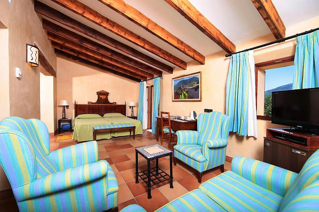 La finca dispone de 12 habitaciones diseñadas para ofrecer un ambiente íntimo y acogedor. Los huéspedes pueden disfrutar de un desayuno en los jardines o relajarse en la zona de piscina, equipada con solárium, tumbonas y sombrillas.